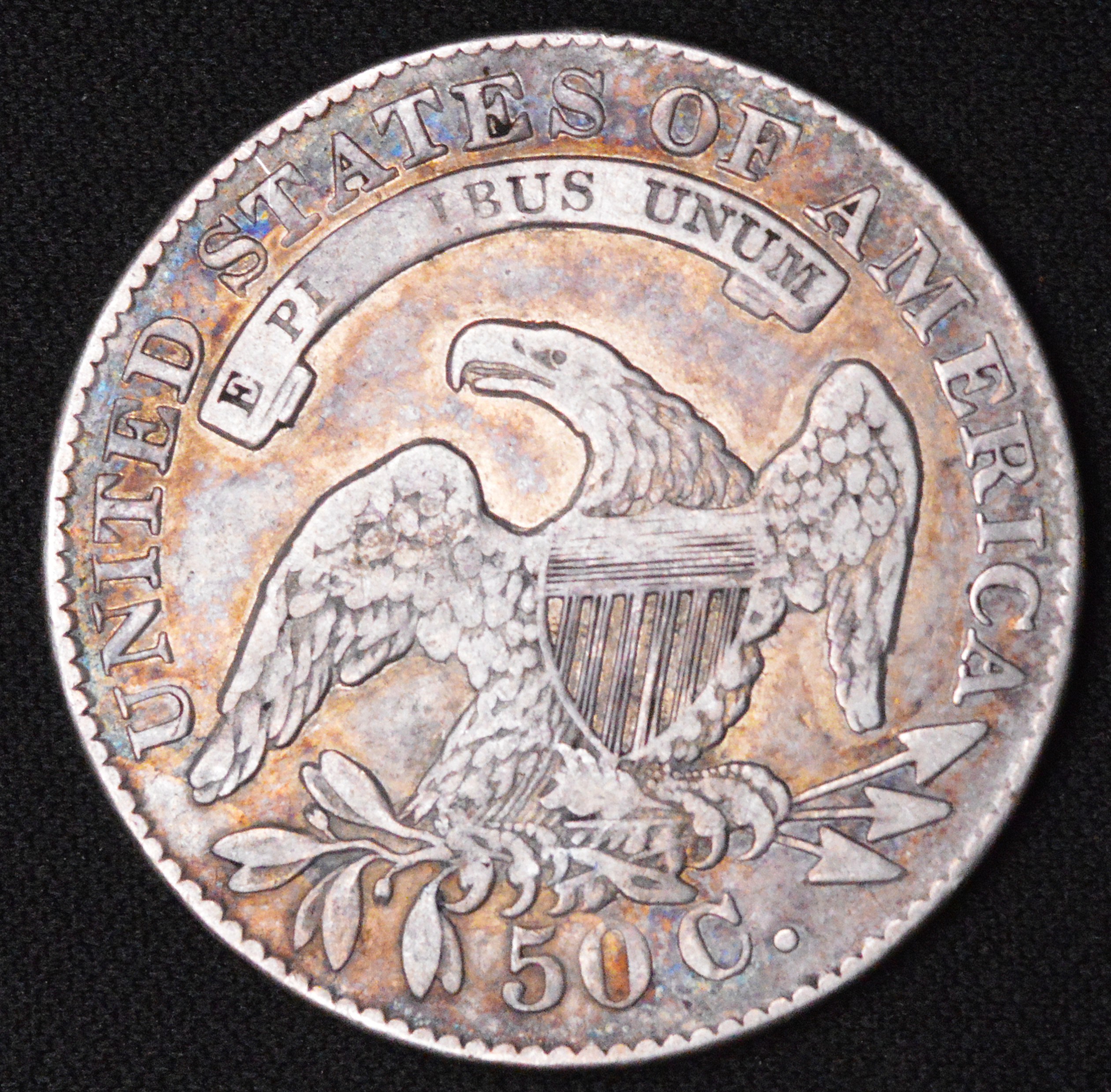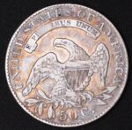 The Capped Bust half dollar series ran from 1807 to 1839 and was the largest circulating silver coin in the U.S. at its time. The edge of the coin is lettered, adding a further element of craftsmanship. In circulated condition, such as “Very Fine” or “Extremely Fine,” these coins still retain significant detail in the hair, cap, the eagle’s feathers, and other device elements, even if high points show moderate wear.