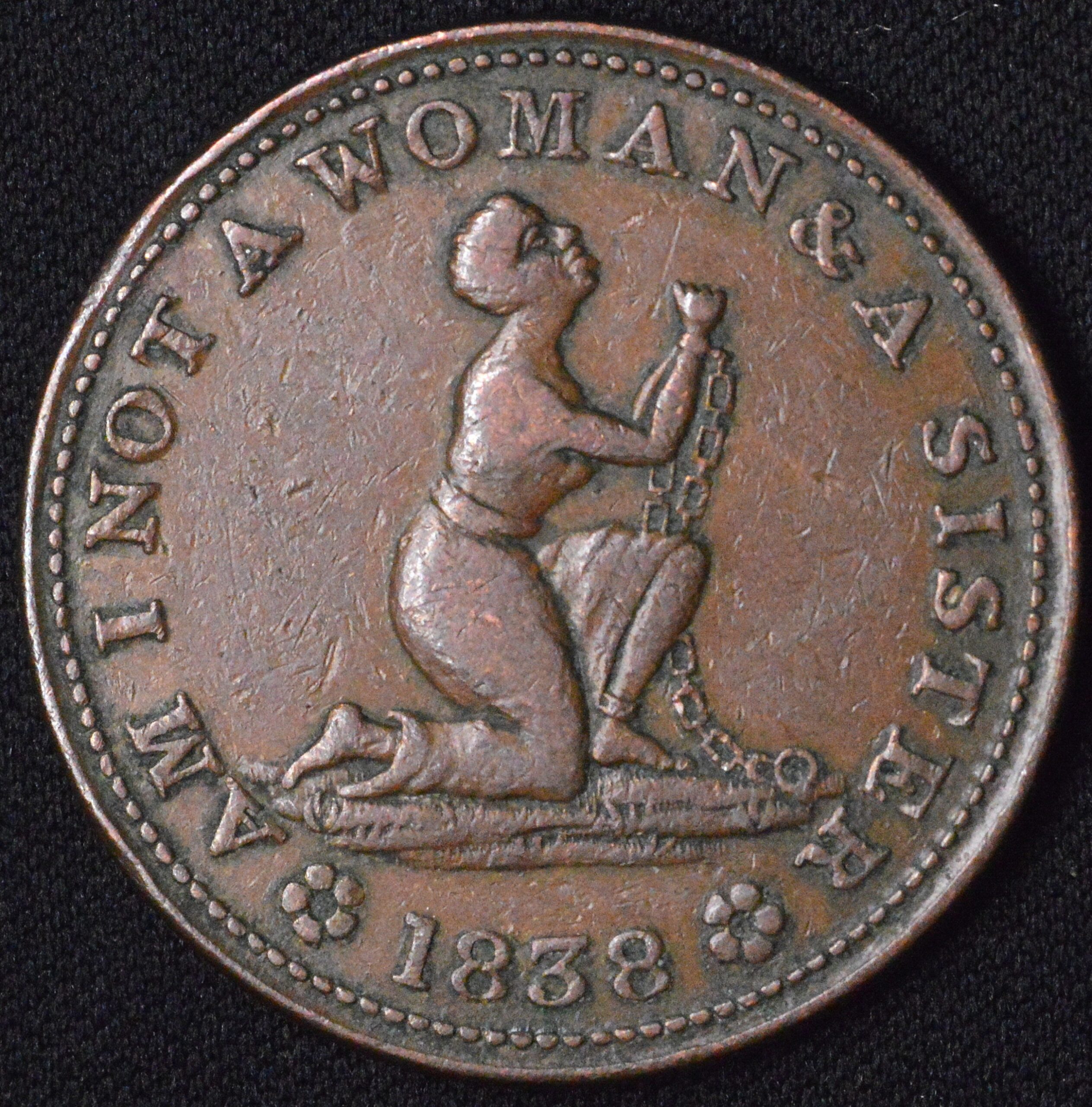 The phrase “Am I Not A Woman & A Sister” in the token’s legend evoked empathy and solidarity by emphasizing the shared humanity and gender of the enslaved individual, appealing to the sensibilities of women’s anti-slavery societies and the general public. The token thus became a tool of both advocacy and education, used in petitions, rallies, and as conversation pieces in homes across the nation. Its rarity today reflects both historical suppression and the token’s significance as a marker of early intersectional advocacy, recognizing that the fight for abolition was intertwined with the struggle for women’s rights.