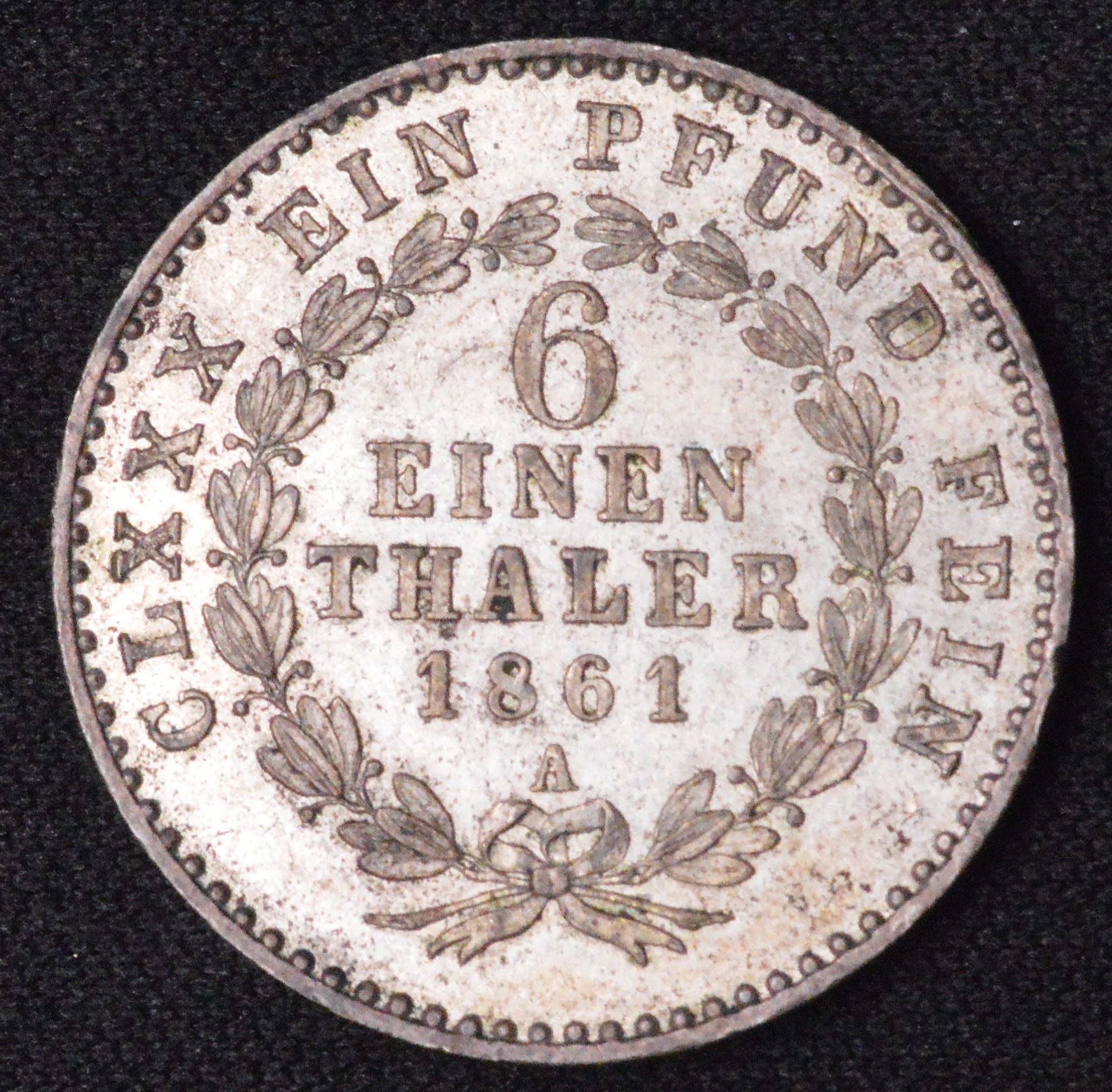 Overall, this 1861 Anhalt-Bernburg 1/6 Thaler is an excellent choice for those who appreciate finely preserved historical coins with proof-like qualities. It combines aesthetic appeal, historical significance, and silver content into a collectible that stands out in any numismatic collection seeking premium German silver coins from the 19th century.