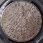 The 1908 Germany Saxe-Weimar-Eisenach 5 Mark “University of Jena” coin is one of the most celebrated and beautifully designed commemoratives from the German Empire period. Struck at the Berlin Mint, this coin was issued to honor the 350th anniversary of the University of Jena, one of Germany’s oldest and most distinguished universities. It was minted under Grand Duke Wilhelm Ernst and bears the mintmark “A” for Berlin.