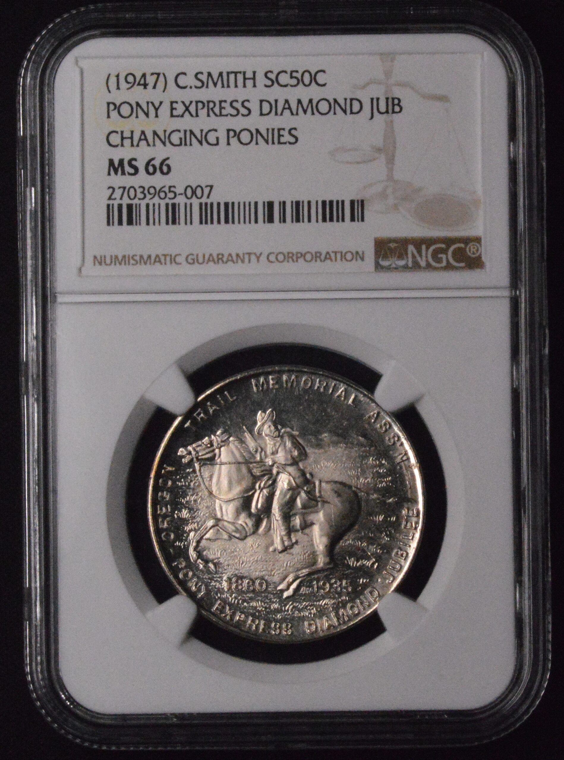 1947 Pony Express White Metal Commemorative Medal NGC MS66 BLAST WHITE!