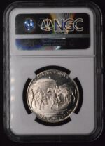 This commemorative medal is recognized and cataloged among popular so-called half dollars, which were privately minted pieces created to mark significant American historical events or landmarks. While some examples were struck in bronze, gilt bronze, or nickel, the white metal varieties are especially prized for their bright, lustrous appearance. Your example, certified NGC MS66, indicates nearly flawless surfaces and superb eye appeal, with blast white luster that emphasizes the finely detailed designs.​
