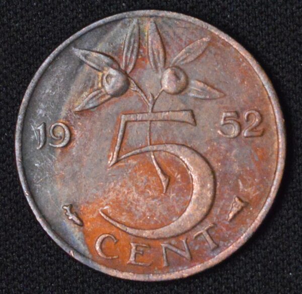 Coins exhibiting full red or reddish toning are especially prized by collectors, as they represent coins that have retained much of their mint beauty without succumbing to dullness or dark patina. Holding a 1952 Netherlands coin with spectacular red hues offers both visual pleasure and a direct link to mid-20th century Dutch colonial and numismatic history.