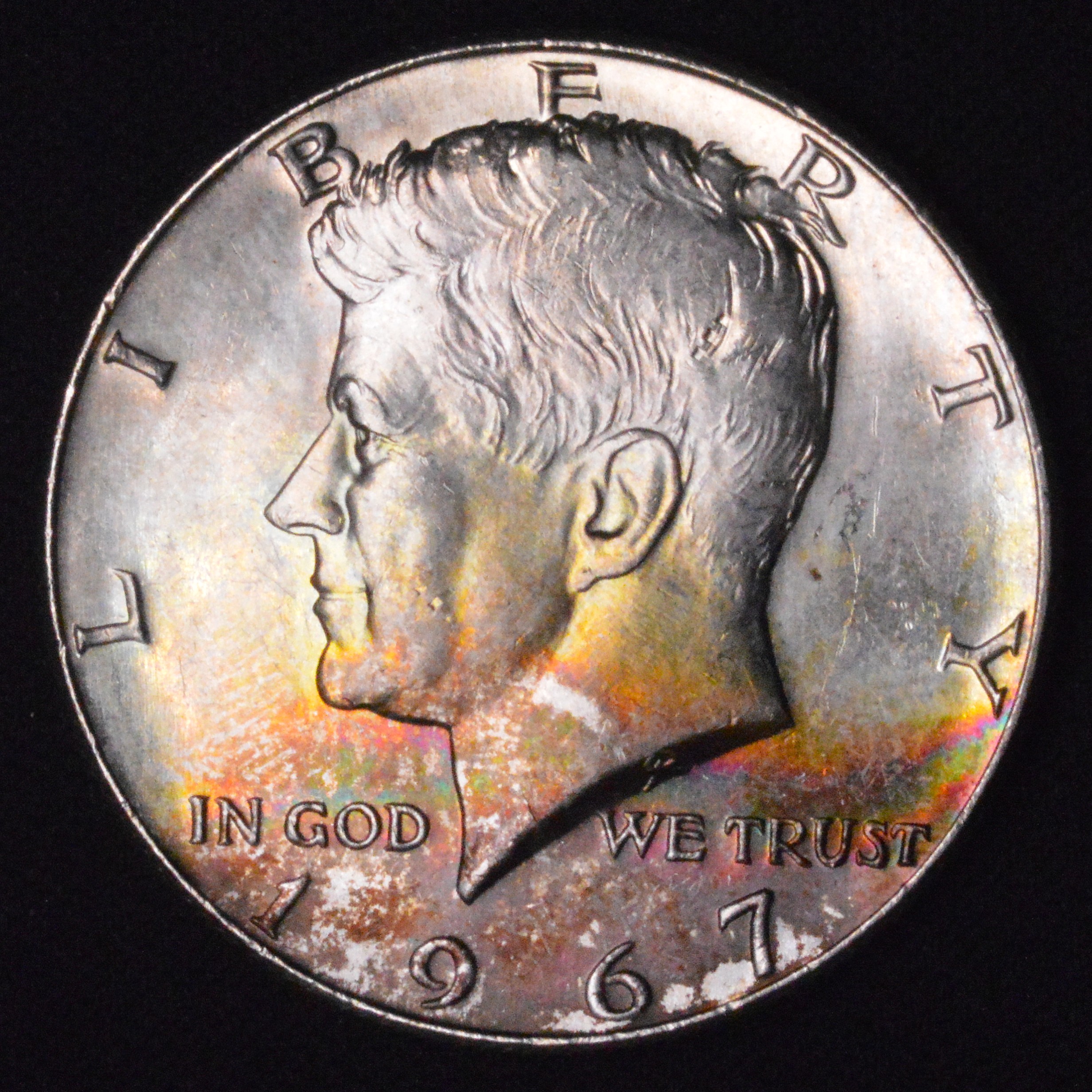 In terms of market worth, circulated 1967 Kennedy halves usually sell for a few dollars above silver melt value. However, Mint State specimens with attractive album toning can fetch prices ranging from $20 up to several hundred dollars, depending on toning intensity, color vibrancy, and certification. SMS specimens in exceptional condition with cameo contrast can command even higher prices.