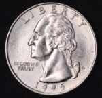 The 1995 Washington Quarter DDO (Double Die Obverse) error is recognized for noticeable doubling, particularly on “IN GOD WE TRUST” and other obverse inscriptions. This variety is sought after by collectors due to both its rarity and the visible doubling that occurs due to a misalignment of the coin’s die during minting.​​