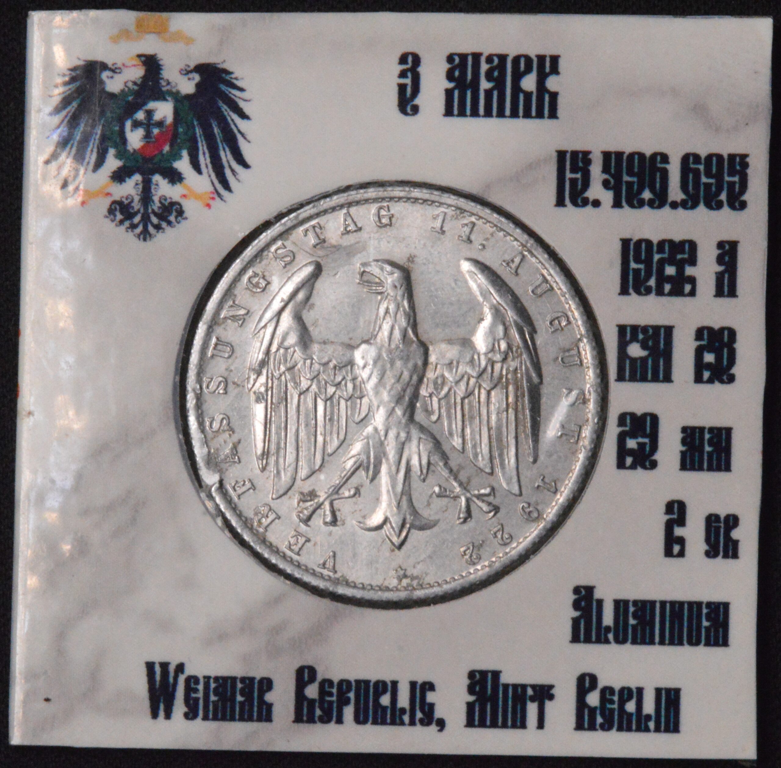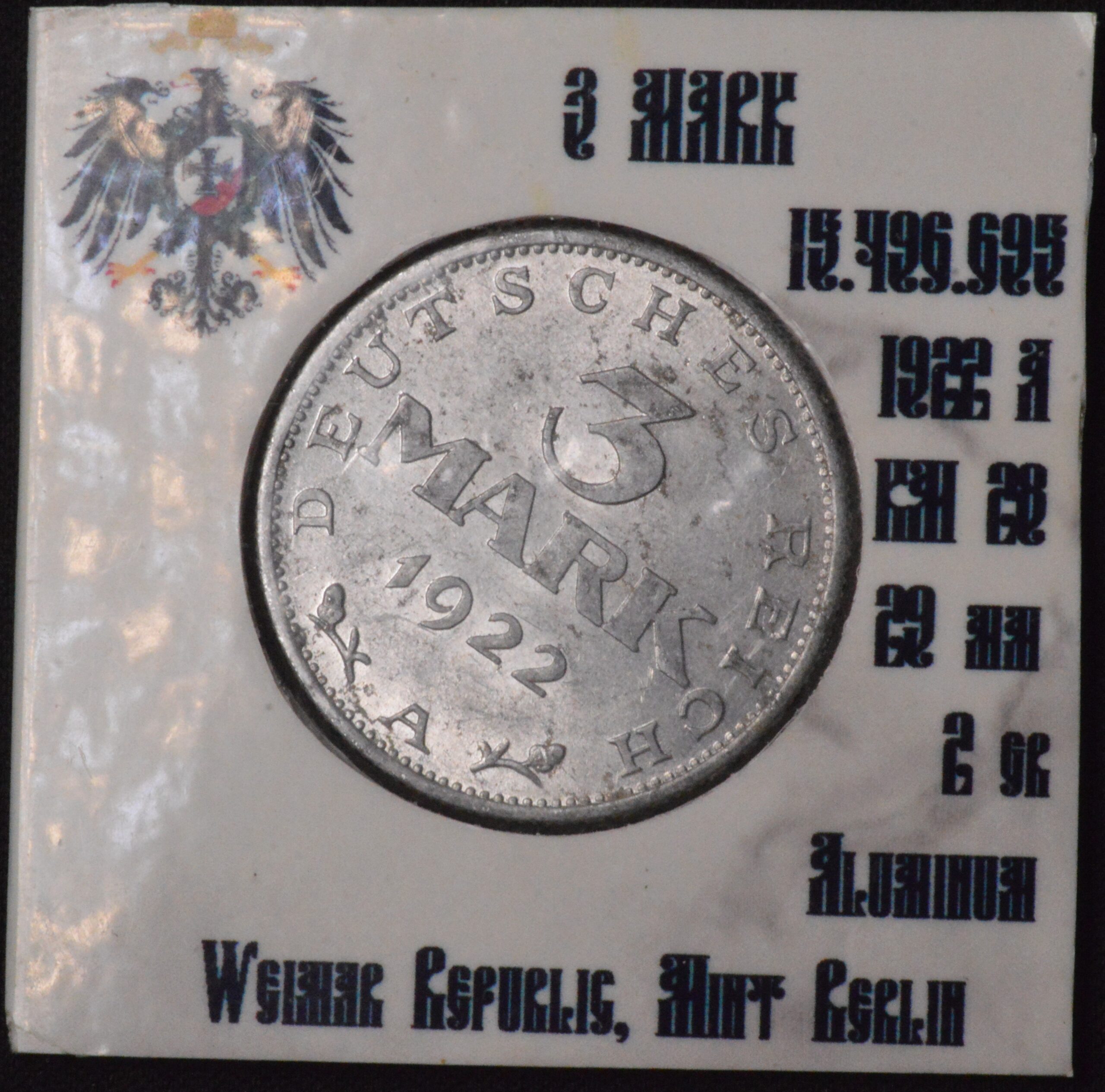The 3 Mark coin from the Weimar Republic represents a fascinating era in German history, produced during the turbulent years following World War I. These coins were first minted in 1922, initially in aluminum, due to rampant inflation that quickly eroded their value; later issues, particularly from 1924 onward, were struck in .500 fine silver and weighed 15 grams, making them attractive to both collectors and those interested in historical bullion. Their edge commonly features an inscription and their diameter is approximately 30 mm, giving them a substantial, elegant presence in hand.