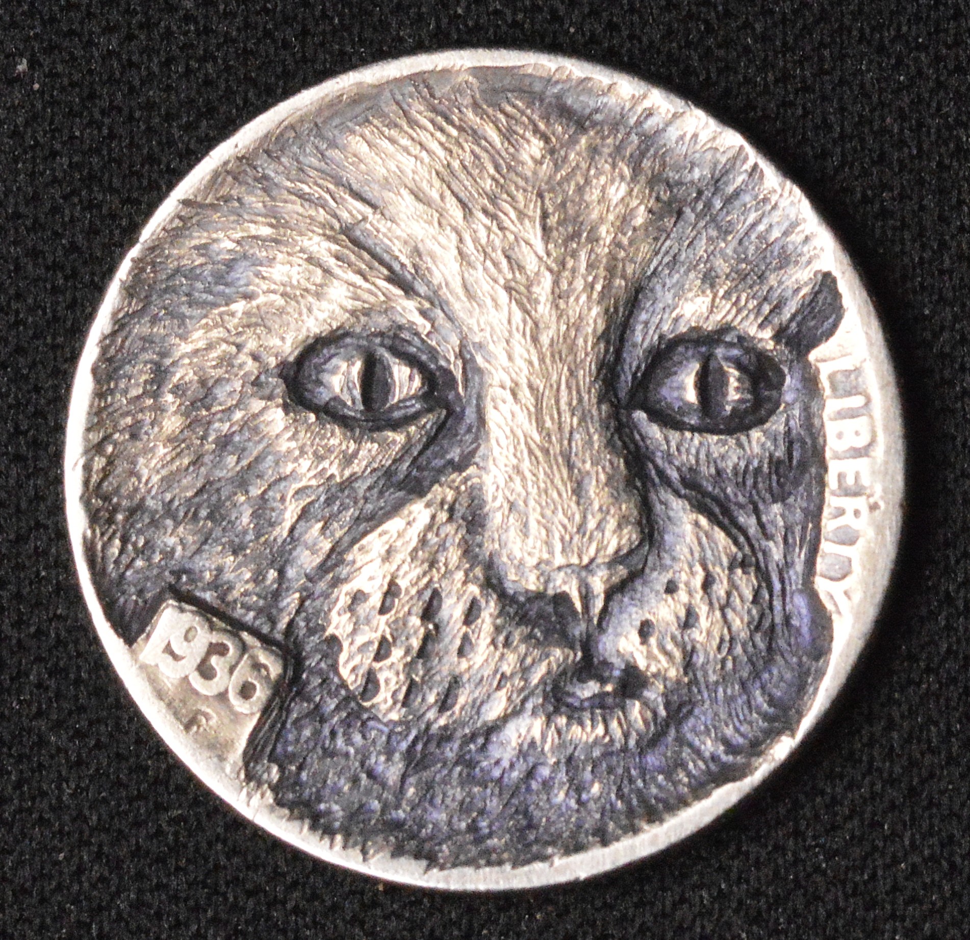 “Cat’s Meow” Hobo Nickel refers to a custom-made hand-carved coin featuring cat-themed designs, such as cat faces or feline artwork, engraved onto authentic Buffalo nickels or similar coins. These unique pieces are crafted by contemporary artists who specialize in transforming vintage coins into miniature bas-relief sculptures—turning the iconic Native American portrait into whimsical or artistic images of cats, often with deep carving and exquisite detail.