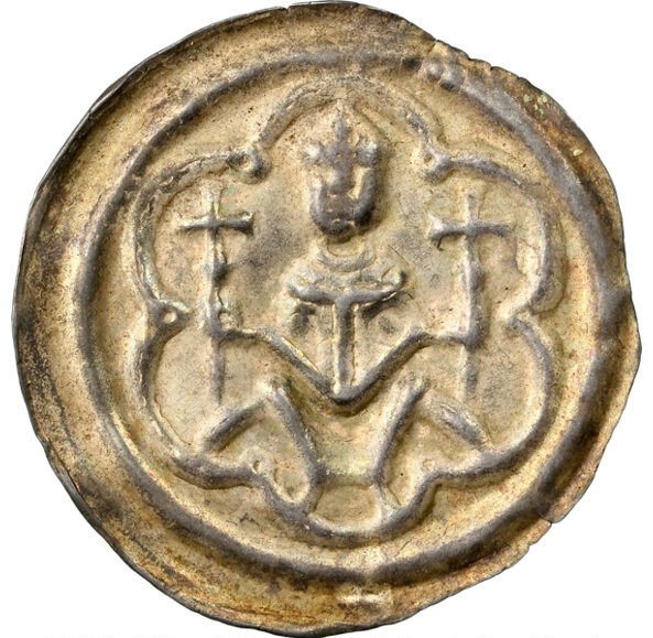 The Magdeburg bracteate from the episcopate of Burchardt von Wohldenberg (1232–1235) is a medieval silver coin representing the Archbishopric of Magdeburg, one of the most influential ecclesiastical territories in the Holy Roman Empire. Minted during a short episcopal reign, it exemplifies the bracteate tradition of the 13th century—thin, single-sided coins struck in fine silver, characterized by high-relief designs and incuse reverses.