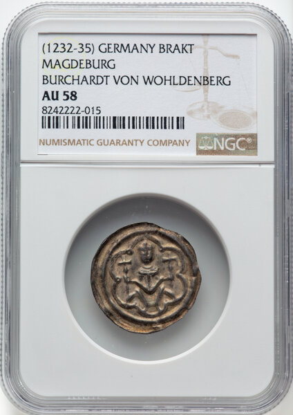 In summary, the Magdeburg bracteate of Burchardt von Wohldenberg (1232–1235) combines artistry, historical depth, and rarity. Well-struck and certified examples like this one highlight the remarkable sophistication achieved by medieval German ecclesiastical mints at a time when coinage also served as both currency and religious expression.