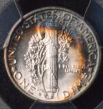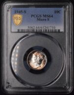 The MASTERFULLY TONED 1945-S Silver Mercury Dime MS64, featuring beautiful colors and the rare Micro “S” variety, is a true treasure for collectors and investors alike. Struck at the San Francisco Mint during the final year of the iconic Mercury dime series, this coin combines historic significance with captivating visual appeal, showcasing a spectrum of colors and a grading of Mint State 64 for exceptional preservation. Every Mercury dime carries the timeless design by Adolph A. Weinman—a portrait of Liberty wearing a winged cap, symbolizing freedom of thought—making it one of the most beloved silver coin designs in American history. The 1945-S pieces have a striking reverse: the fasces, representing unity and strength, paired with an olive branch for peace. This year’s mintage was 41,920,000, but few survive today with the combination of MS64 quality and masterful rainbow toning. The Micro “S” variety adds an extra layer of rarity, with a smaller-than-usual mintmark appearing beneath “E PLURIBUS UNUM” on the reverse. Collectors covet this variety for its distinctive appearance and the mysterious minting process that produced it. Gorgeous color toning occurs as the silver reacts with its environment, awarding the coin a vibrant palette that makes every example unique and desirable in auctions and showcases. Composed of 90% silver and weighing 2.5 grams, the Mercury dime’s silver content ensures intrinsic bullion value alongside numismatic appeal. The MS64 grade denotes near-pristine surfaces and sharply rendered details, further enhanced by lustrous, multicolored tones that reflect years of careful preservation and fortunate environmental exposure. No two toned dimes are alike, and Micro “S” varieties graded this high are notably hard to come by. Collectors will appreciate the solid investment value and historical allure that the MASTERFULLY TONED 1945-S Silver Mercury Dime MS64 Micro “S” offers. This coin stands as a testament to the artistry and legacy of American coinage, and its pairing of vibrant color and micro mintmark rarity ensures it will remain a showpiece in any superior collection.