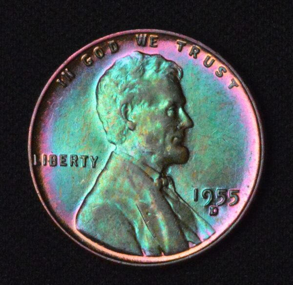 In summary, the 1955-D Lincoln Wheat Cent is a staple of mid-century American numismatics, but one with “monster mint set fusion toning” becomes an eye-catching and valuable highlight in any coin collection, appreciated for both its historical context and spectacular visual impact.