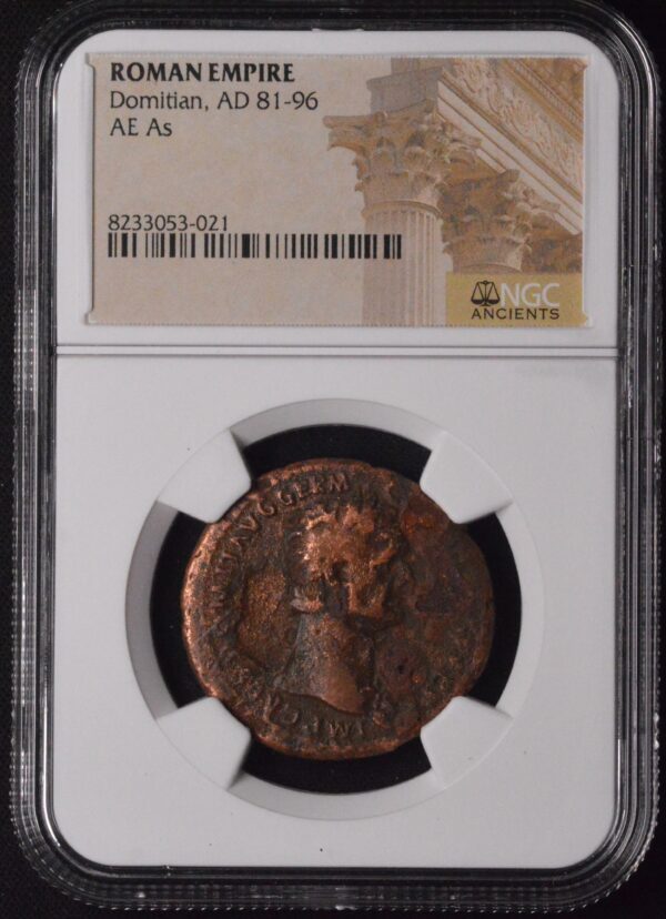 The NGC certification of this Æ As confirms its authenticity and condition, making it a valuable collector’s piece and a credible artifact linking directly to Domitian’s reign and the Roman Empire’s history.