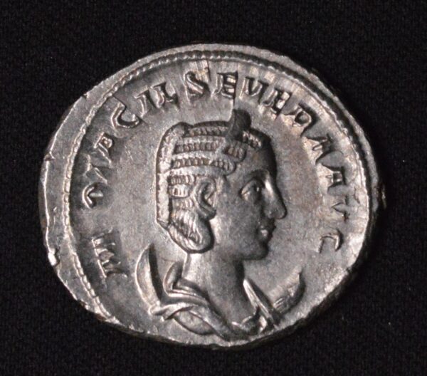 The Roman Silver Antoninianus of Otacilia Severa, minted in Rome around AD 244-249, is a rare and historically significant coin. Otacilia Severa was the wife of Emperor Philip the Arab, and this coin reflects her high status as Augusta during a period marked by political instability and the Roman Empire’s millennium celebrations. The coin is made of silver-washed bronze, typical of antoniniani from this turbulent mid-third century.