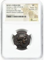 Auction records show that similar AE litrae of Hicetas, depending on condition and patina, generally sell in the range of $100–$250, with choice examples (like this NGC-certified VF) at the higher end. Well-struck pieces with appealing green patina or clear legends have achieved over 200 USD in major 2025 auctions.