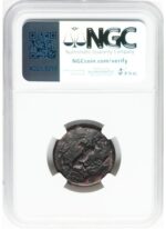 The NGC grade of VF (5/5 for strike, 2/5 for surfaces) indicates a sharply struck piece with moderate wear and some corrosion or patina roughness typical of ancient bronze coins. This makes it a better-than-average collectible with strong design definition despite surface texture.