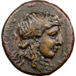 In summary, this Sicily, Syracuse AE Litra (ca. 288–279 BC), NGC graded VF 5/5 – 2/5, is an impressive bronze issue illustrating Zeus and his eagle, symbolizing divine sanction and power during Hicetas’s brief rule. It remains a historically and artistically significant artifact of late Classical Syracuse, valued for its strong strike, ancient patina, and typological importance.
