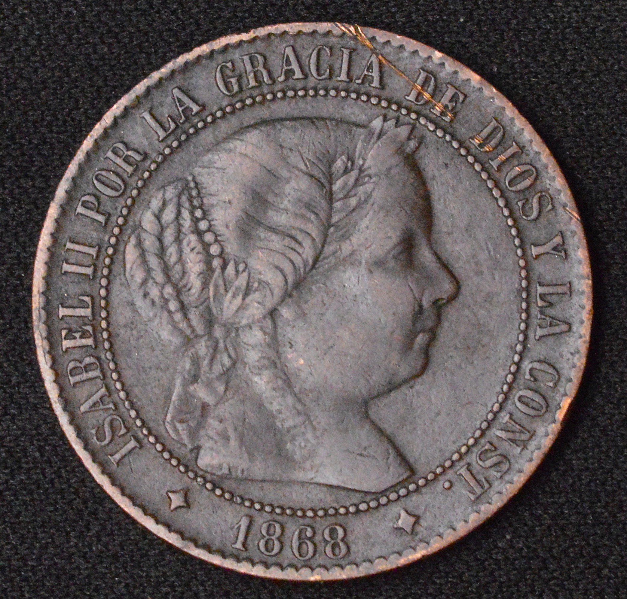 The Spain Isabel II 2 1/2 Centimos 1868 Jubia is a historic copper coin minted during the reign of Queen Isabel II, representing a significant period in Spanish numismatics. This particular coin, struck at the Jubia mint, is sought after by collectors interested in European history and 19th-century coinage. It recently sold for $10 in circulated condition, indicating both its affordability and continued appeal within the market.