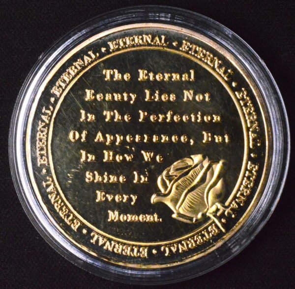 Many such designs are produced in limited runs by private mints or metal artisans and are not legal tender coins. The “tattoo chick” motif generally depicts a stylized woman with tattoos, often rendered in a blend of classic pin-up and modern tattoo-art shading. The gold plating is electro-applied for a reflective luster, providing both visual appeal and surface protection.